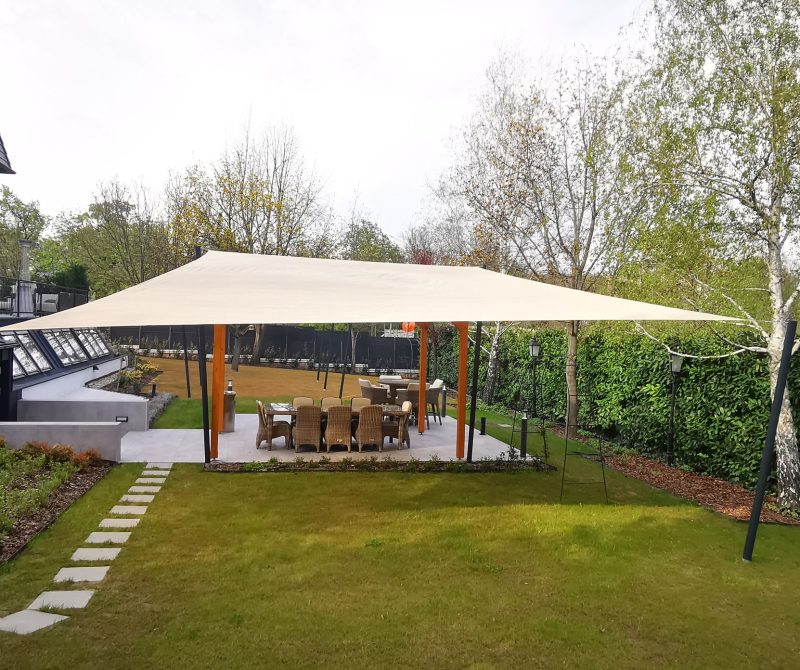 Pergola árnyékolás napvitorlával. Napvitorláink kivitelezésénél törekszünk arra, hogy a lehető legtartósabb anyagokat használjuk fel ügyelve, hogy az anyag bírja is a rá nehezedő terheléseket. Alkalmazási területe igen sokrétű. ...