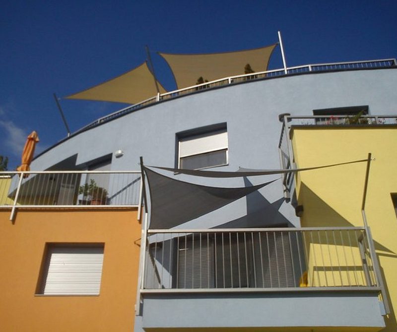 Emeleti teraszok árnyékolása napvitorlával. Különleges megoldás a Balaton parton található társasháznál. www.napvitorlabudapest.hu...