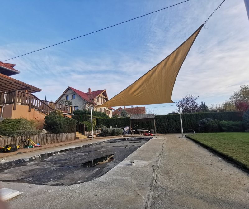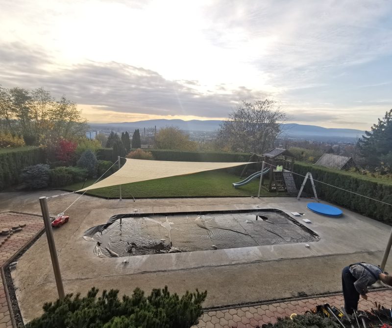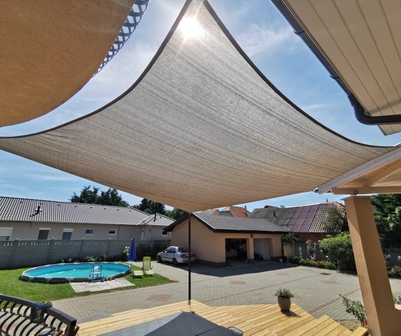 Egy váci családi ház udvarán, napvitorla került a medence fölé. www.napvitorlabudapest.hu...