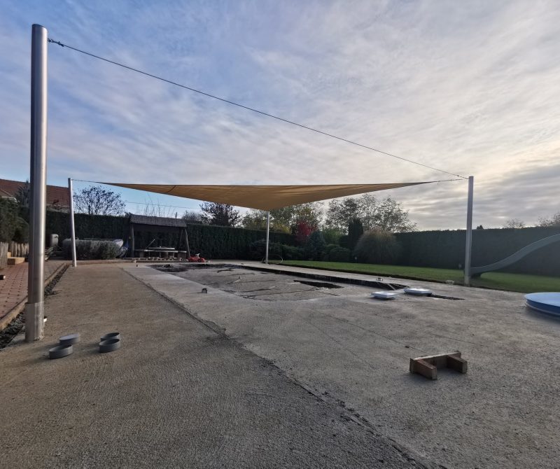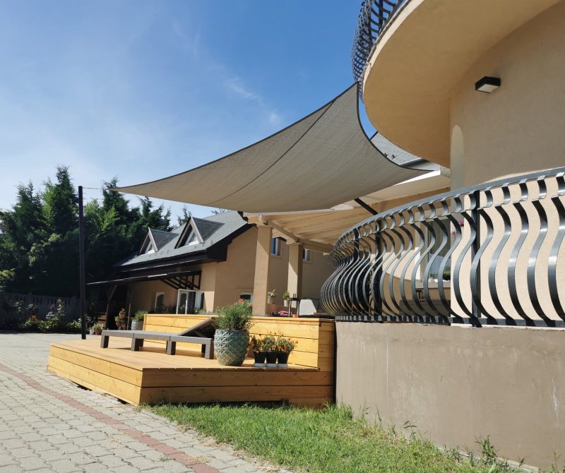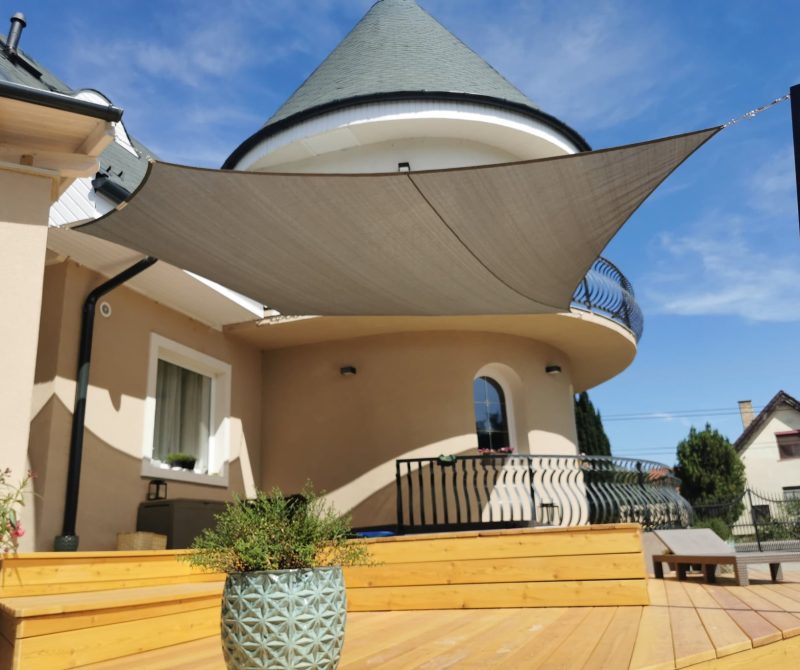 Kertrendezés előtt már fent a napvitorla Etyeken. Árnyékolás napvitorlával, az árnyékolás új dimenziója.... www.napvitorlabudapest.hu...