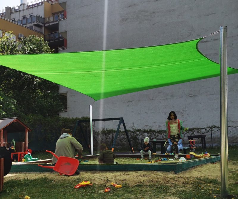 Óvoda udvaron található játszótér árnyékolása napvitorlával. Alkalmazási területe igen sokrétű. A napvitorlákat ötféle típusból választhatja ki széláteresztő, kombinált, fix, mobil, vízhatlan, így olyan típusú napvitorlát választhat, ami az Ön számára a legmegfelelőbb....
