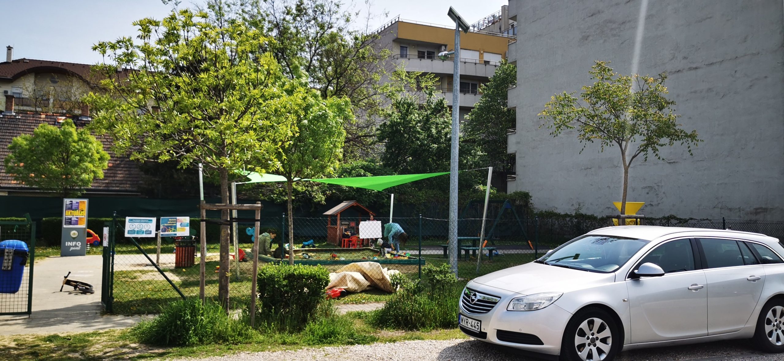 Homokozó árnyékolás napvitorlával, Budapest VIII. kerület