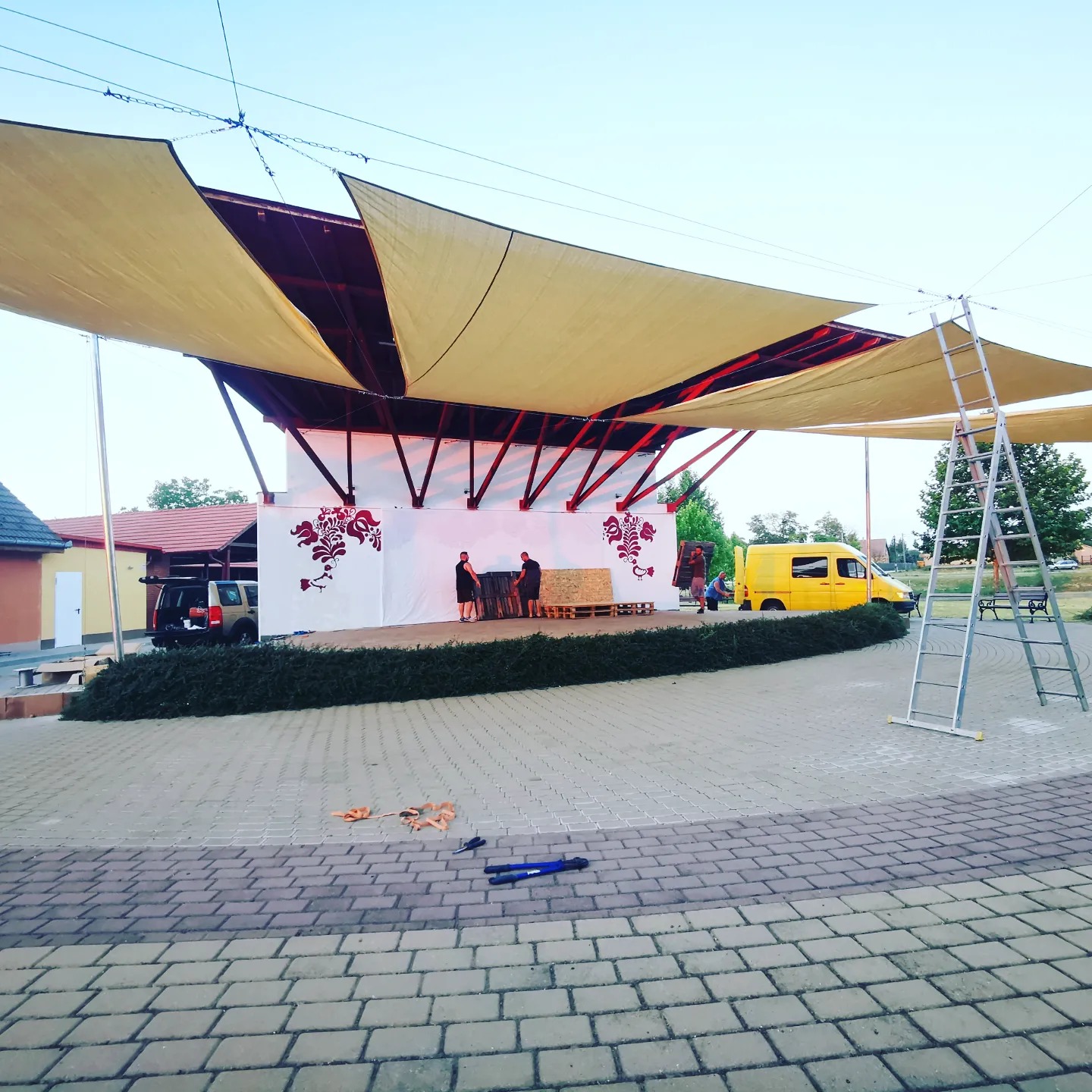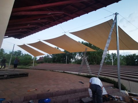 Makád közösségi tér és színpad árnyékolása.