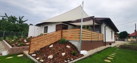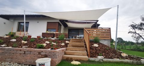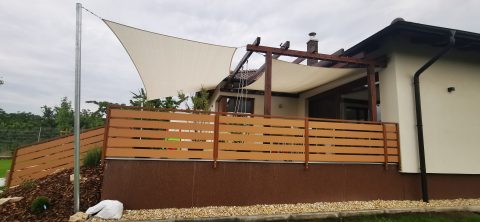 Családi ház teraszának árnyékolása napvitorlával